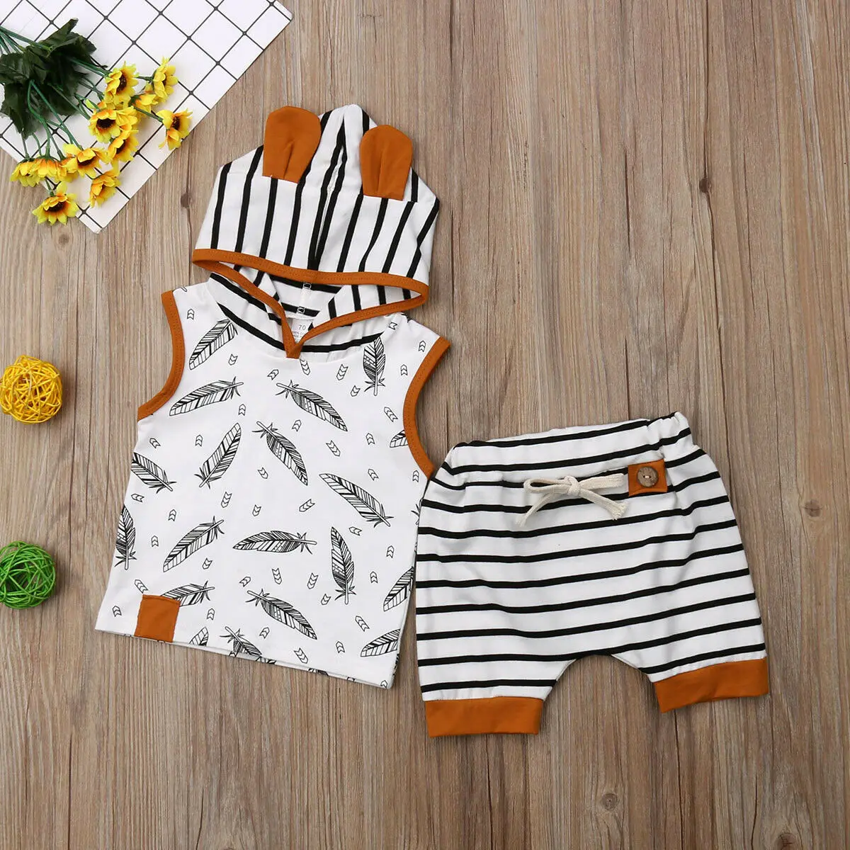 Cheap Chance for 2 pieces Sleeveless Hoodie Top and Stripe Shorts Set for Baby Boy