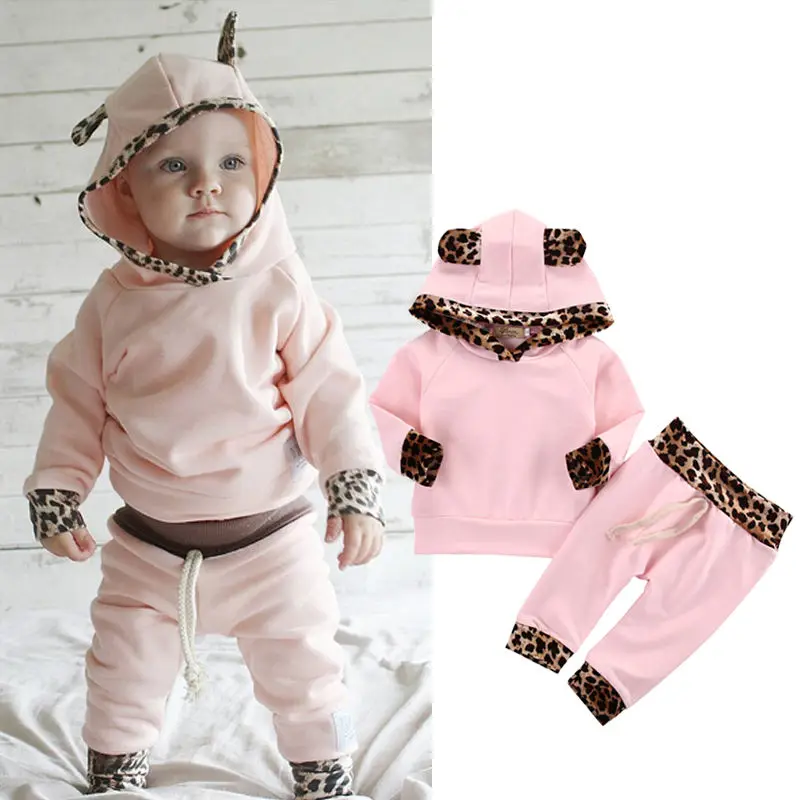 Limited Price for Leopard Hoodie Top and Pant 2pcs Set For Baby Girl Clothes