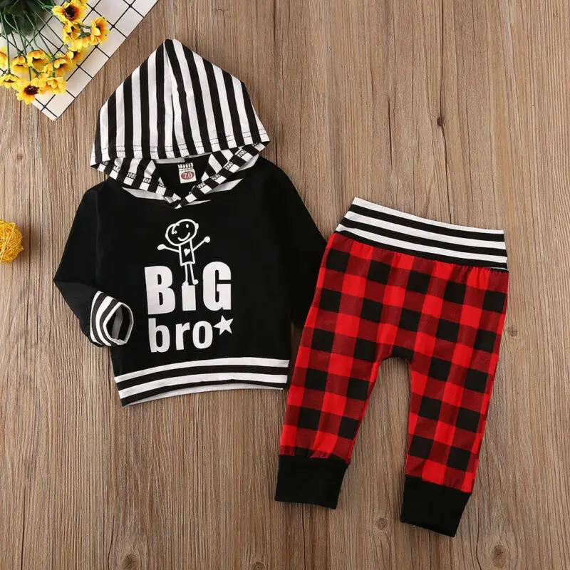 Buy Toddler Big Brother Casual Newborn Set Baby Boys Hooded Outfits Plaid Hoodies Long Sleeve Tops Pant Right Here and Right Now Just for USD US $6.54, Price will be rise up at any time without notification and I cant guaranted that the stock is still available tommorow or next hour. So Please Save It Now!